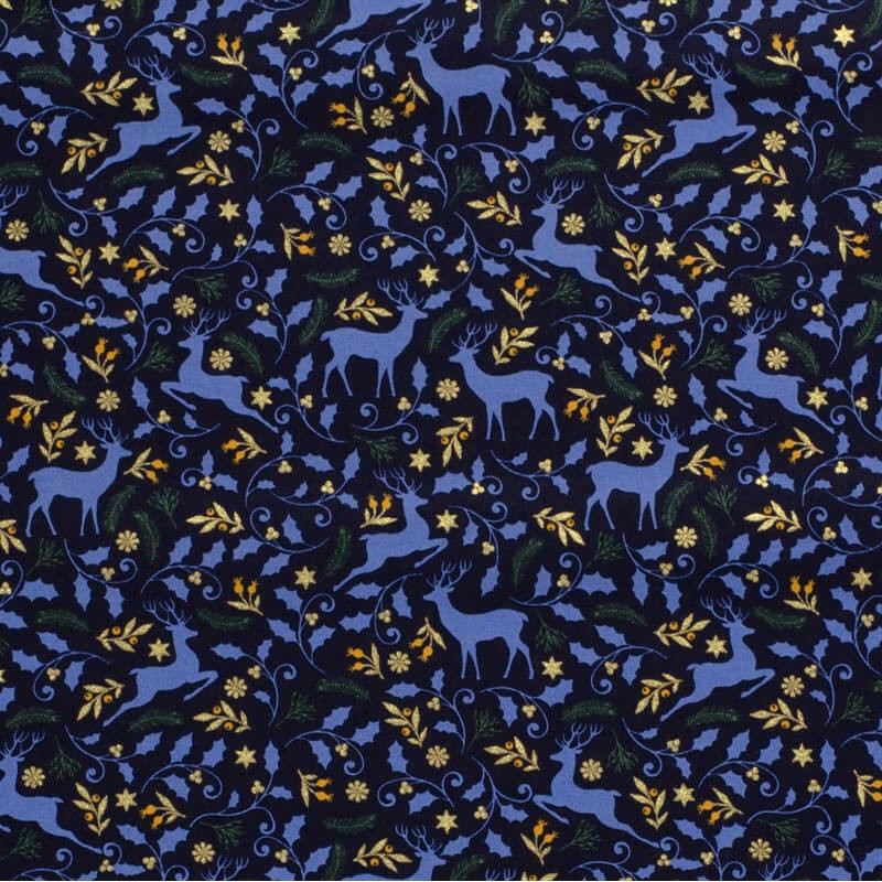 Tissu coton rennes glitter fond bleu marine