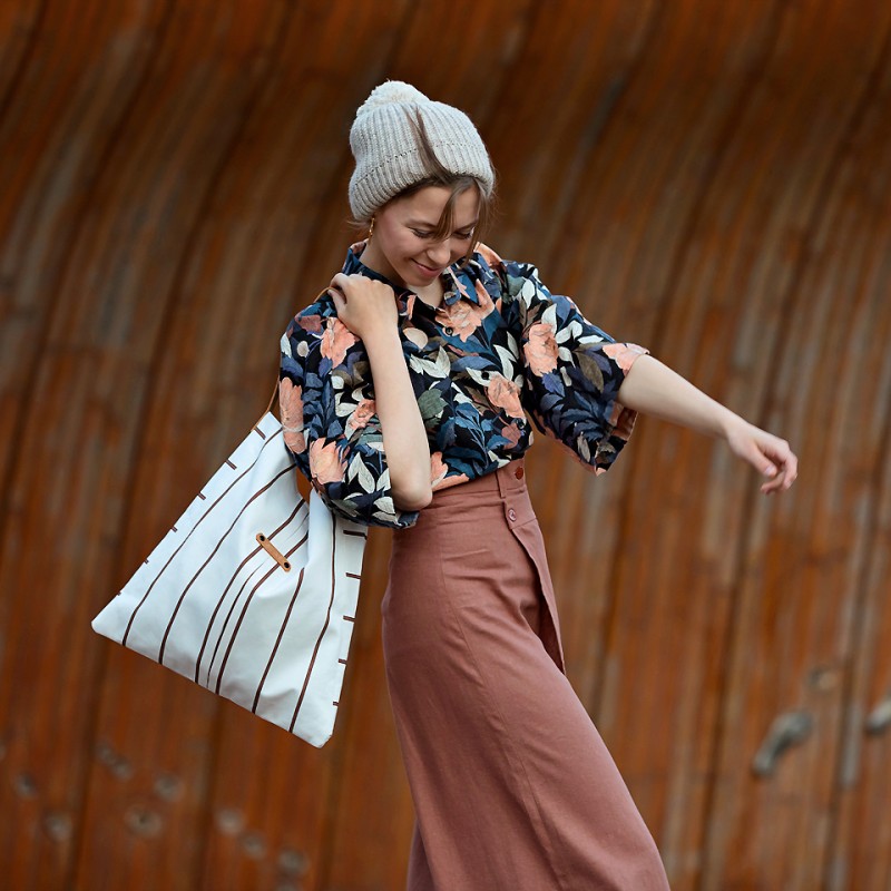 Tissu toile gabardine Verticals blanc